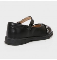 Introducing these shoes from Torino for your little one, made of shiny faux leather, with a classic distinctive design with a black toe and decorated with a soft chain with a butterfly, with a front buckle closure