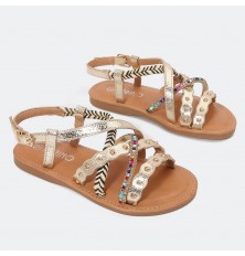 Make comfort and style the basis of your little girl's look with these Turin sandals with a trend design with a snakeskin part, decorated with a colored strass rope, buy it now and do not hesitate