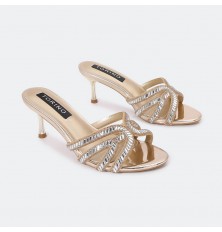 Shine with these slippers from Torino, with a 7 cm heel and a chic design decorated with Strass. and available in colors that can be coordinated with different looks