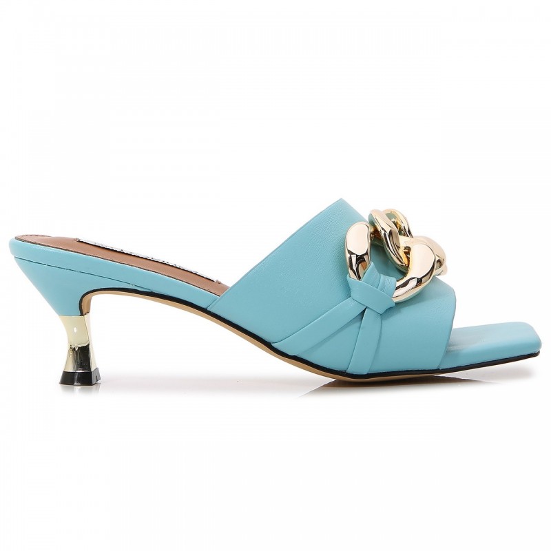 Heel slippers decorated with an attractive chain