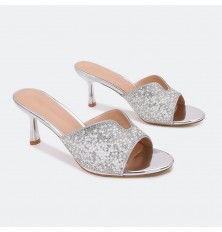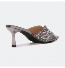 This will become your favorite 7cm heel and round-toe sandals, a modern design in modern colors decorated with pearls and shiny strass, suitable for parties