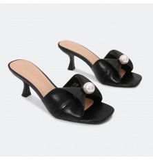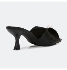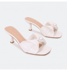 We offer you these slippers from Turin, with a soft and comfortable design and a 5cm heel, a bow toe decorated with a pearl bead, suitable for daily use