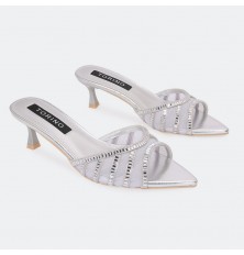 ZXQ1905 Heeled slippers made of tulle embellished with strass.