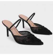 NXQB30 Heeled slippers made of tulle adorned with pearls.