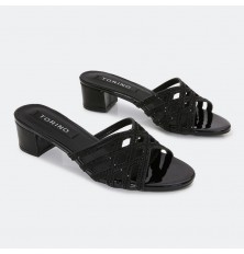 We present to you these slipper from Turin, featuring a wide and comfortable heel, an elegant and shiny design adorned with strass, suitable for all occasions.