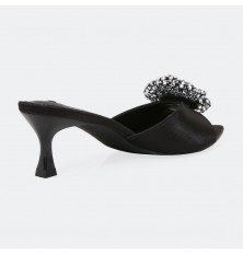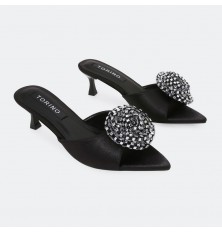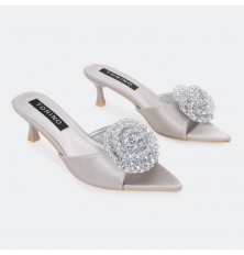 ZXQ2011 Heeled slippers adorned with a rhinestone-studded flower