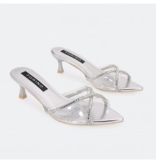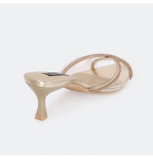 Shine with these slipper, featuring an open toe and a 5cm heel, luxurious design with a transparent section adorned with strass, suitable for all occasions.
