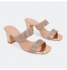 These sleepers combine comfort and style, feaTorinog a 5cm wide heel and a trendy design adorned with sparkling strass, available in colors that can be matched with different outfits.