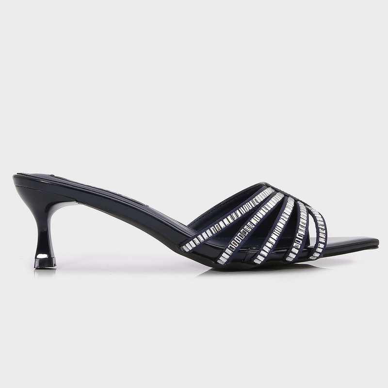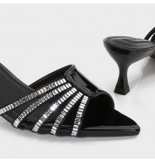 We present to you these slippers from Torino, with a 5 cm heel, a luxurious design feaTorinog a pointed toe with part made of shiny leather and part decorated withstrass, suitable for all occasions.