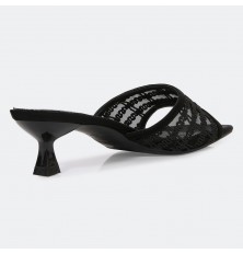 HXQ573 Elegant heeled sandals made with embroidered tulle fabric