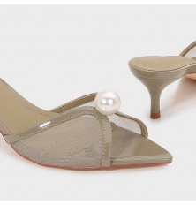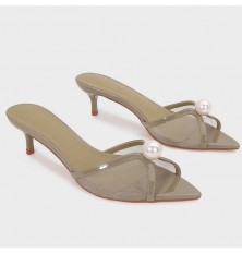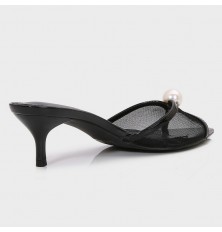 Shine with these Torino heels with a 4 cm heel, an elegant design featuring a tulle section adorned with a pearl, suitable for all occasions, available in must-have colors.