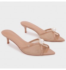 QXQ2167 Heeled shoes with a pointed toe and a tulle detail
