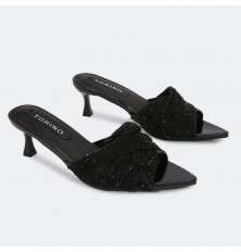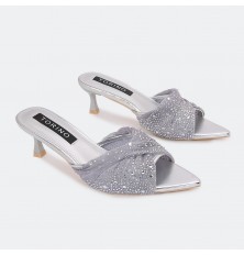 We present to you these slippers from Torino, a distinctive design made of tulle adorned with strass, available in colors that can be coordinated with different outfits.