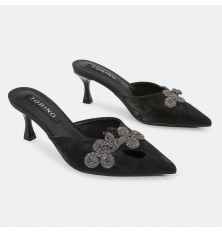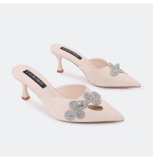 Shine with this 5 cm heel, with a closed pointed toe and a classic design decorated with a brooch. Available in colors that can be coordinated with different looks.