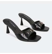 Shine with these TORINO sandals, feaTORINOg a 7 cm heel and an open square toe, a luxurious design adorned with golden accessories, which can be coordinated with various looks.