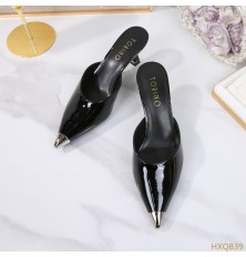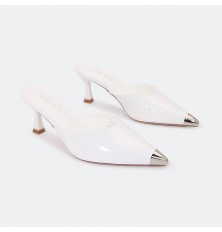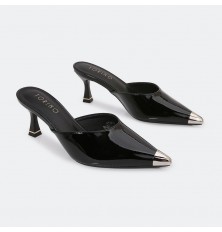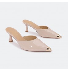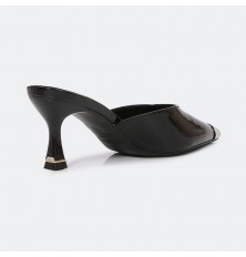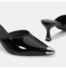 Introducing these slippers from Turin, in shiny faux leather, with a heel of 5 cm and a pointed toe, can be coordinated with different options