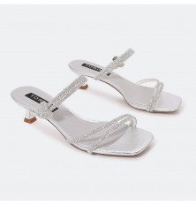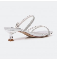 HXQ477 Small-heeled slippers with Crystal ribbons design