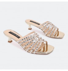 Your elegance will be completed with this 4 cm heel , a distinctive and shiny design decorated with a strass, suitable for Evening Times
