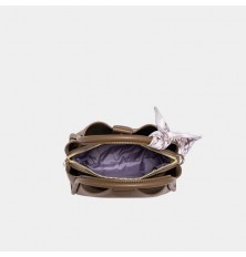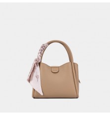 You can carry this bag by hand or on the shoulder using a detachable strap . Small size and soft design, decorated with a scarf