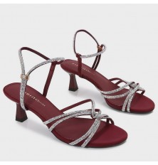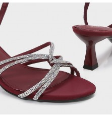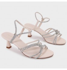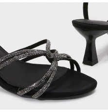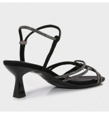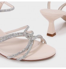 Add elegance to your look with this 4 cm heeled sandal, feaTorinog a unique design with sparkling crystal straps, perfect for evening occasions.