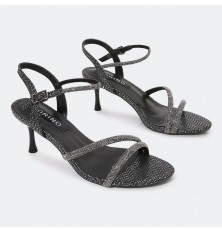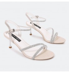 Add elegance to your look with these 7 cm heeled sandals . With a distinctive design of shiny crystal ribbons, suitable for Evening Times