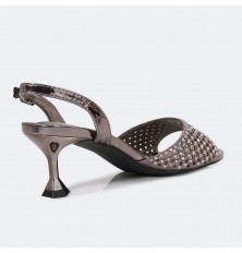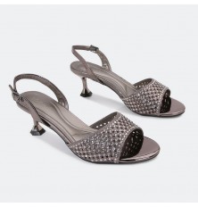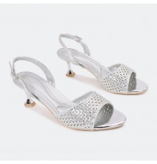 Shine with these sandals with 5 cm heels , with an open toe and a distinctive design decorated with a soft strass , ankle strap and buckle for closure