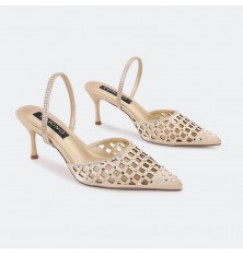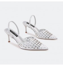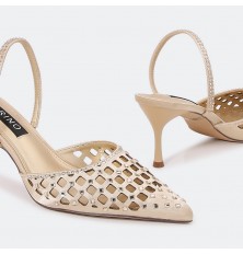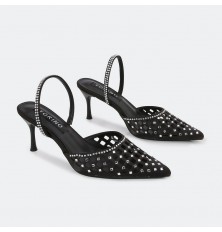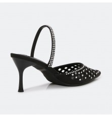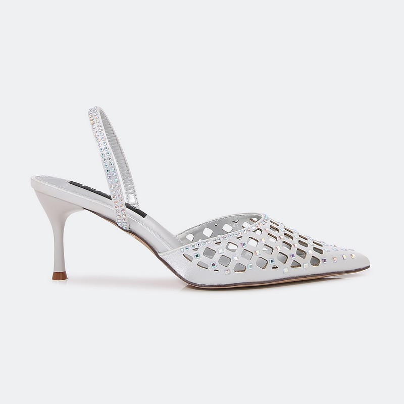 Stand out with these 5cm heeled sandals, a sleek and hollow closed-toe design decorated with shiny strasses, timeless
