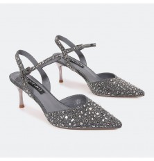 Shine with these sandals from Turin, with 7 cm heels and a luxurious design decorated with strasses, suitable for all times