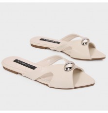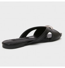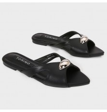 Flat sandals with a practical and elegant design, feaTORINOg a pointed toe, made of synthetic leather with shiny stone, suitable for daily use.