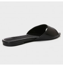 With a stylish and practical design, this slipper is a great choice for your daily look. Made from textured synthetic leather, it features a round toe and is available in basic colors.