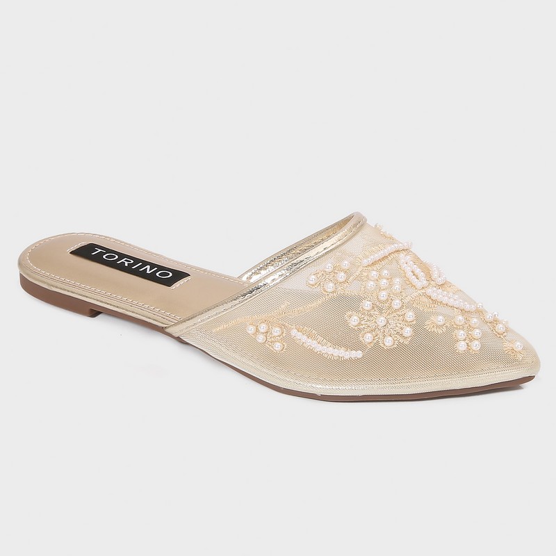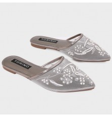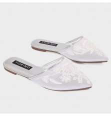 This slippers is an ideal choice for your daily look, feaTorinog a stylish design with a beaded tulle toe and adorned with pearls, available in elegant colors