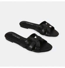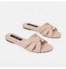 We offer you flat slippers made of luxurious synthetic leather, with a snakeskin pattern, in a practical and elegant design suitable for everyday use.