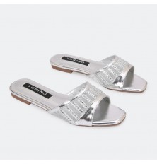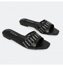 We present to you these slippers from Torinoo, with a shiny square toe and a tulle part decorated with strass. Easy to wear, a practical design that suits all times.