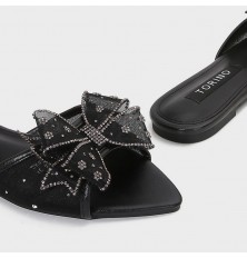 We present to you these slippers from Torino, featuring a unique design with a tulle section and a butterfly adorned withstrass, available in colors that can be coordinated with different outfits.