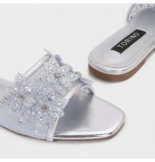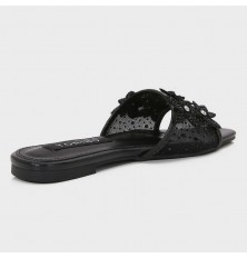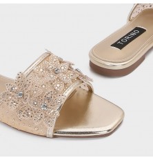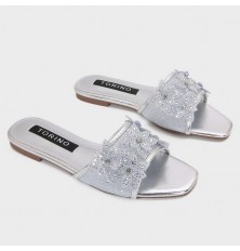 ZX3187 Flat slippers decorated with tulle flowers studded withstrass