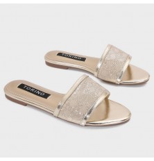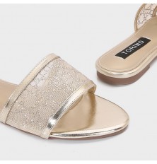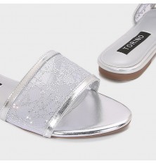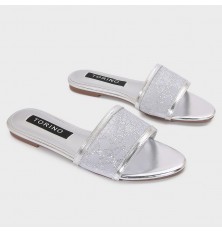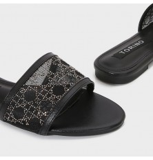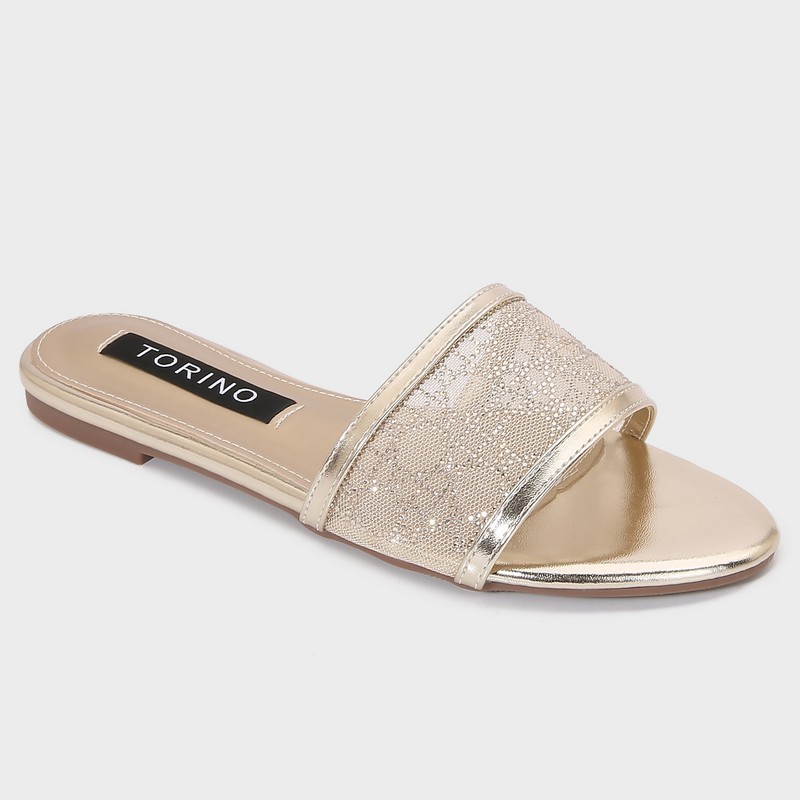 Shine with these flat slippers from Torino, featuring an elegant design with a tulle part adorned withstrass, available in essential colors.