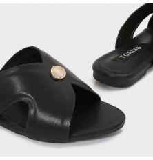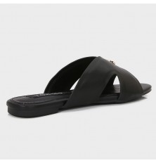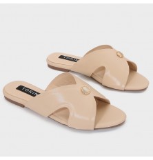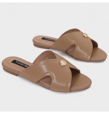 We offer you flat slippers made of premium synthetic leather, with a practical and stylish design suitable for daily use, available in essential colors.