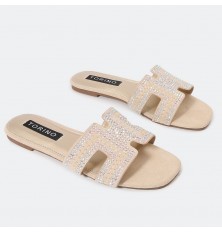 Comfortable and practical flat slipper Suitable for all times and places , decorated with an attractive strass on the top