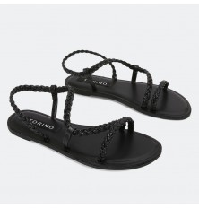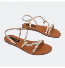 With a stylish and practical design, we offer you these round-toe flat sandals with braided ankle buckle, comfortable and timeless
