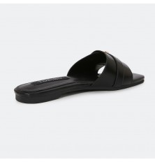 Comfortable and practical flat slippers in durable leather, elegant design, with a supportive front buckle for your comfort, available in indispensable colors
