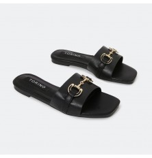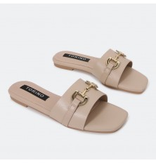Introducing these slippers from Turin, with a square toe decorated with a gold accessory, available in indispensable colors and can be coordinated with different options