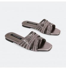 With a sleek design, this slipper is the perfect choice for your daily look, feaTorinog a square open toe with a distinctive geometric design adorned with strass, which can be styled with multiple options.